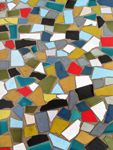 Mosaïque vintage composée de carreaux multicolores de formes irrégulières.